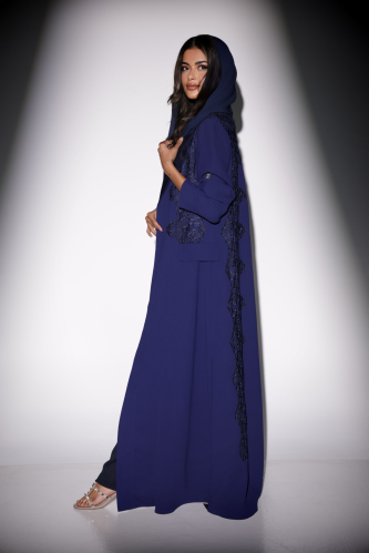عباية قماش تفتة وكريب كحلي وإضافه دانتيل قصة جاكيت