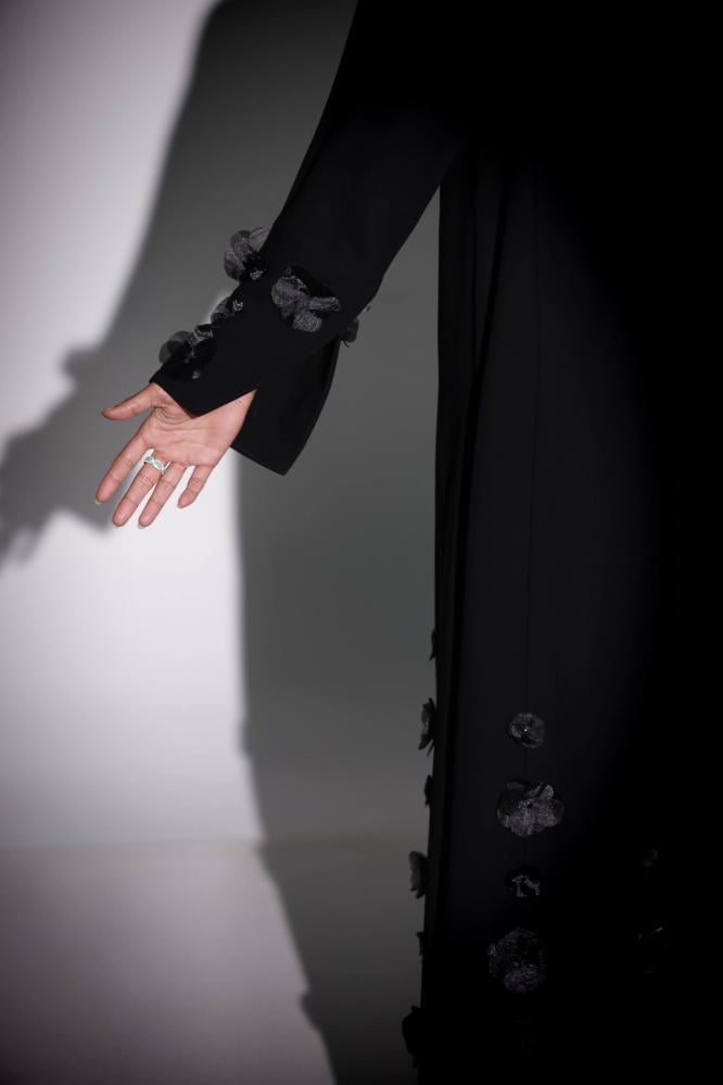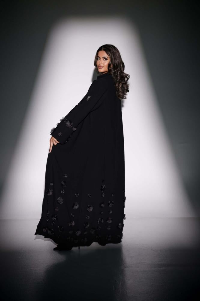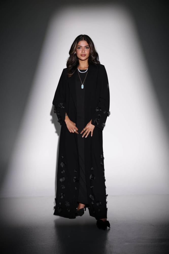 اجعلي إطلالتك أكثر فخامة مع عباية سوداء بتصميم جاكيت راقٍ وتطريز وردي أسود أنيق في الأسفل، تمنحك حضورًا استثنائيًا في المناسبات واللقاءات الخاصة. مصنوعة من قماش كريب فاخر بانسيابية رائعة لراحة تدوم طوال اليوم.
