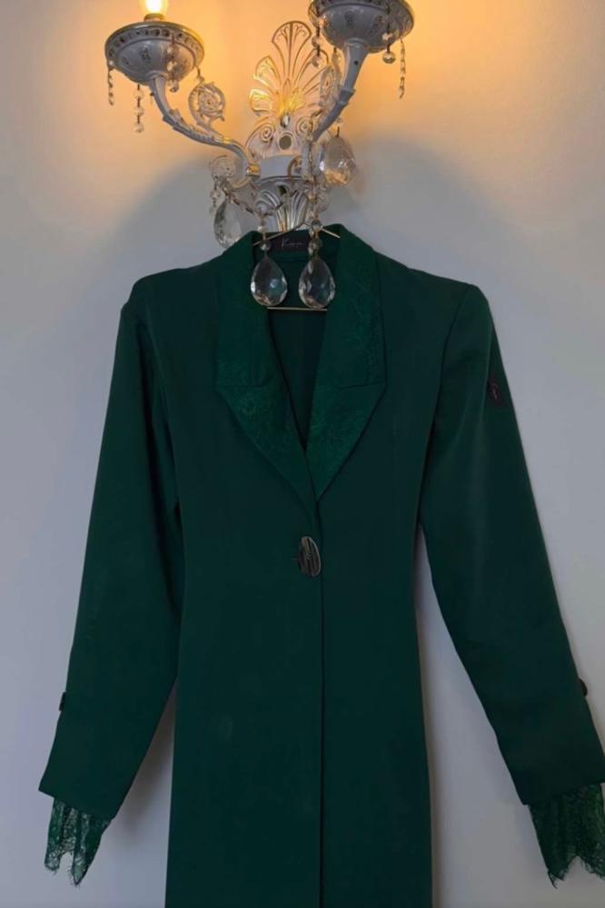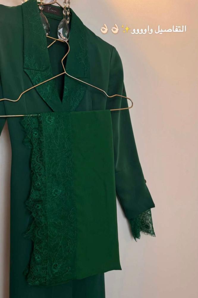 عباية قماش كريب أسود او اخضر مع تطريز دانتيل بالاكمام والرقبه قصة جاكيت