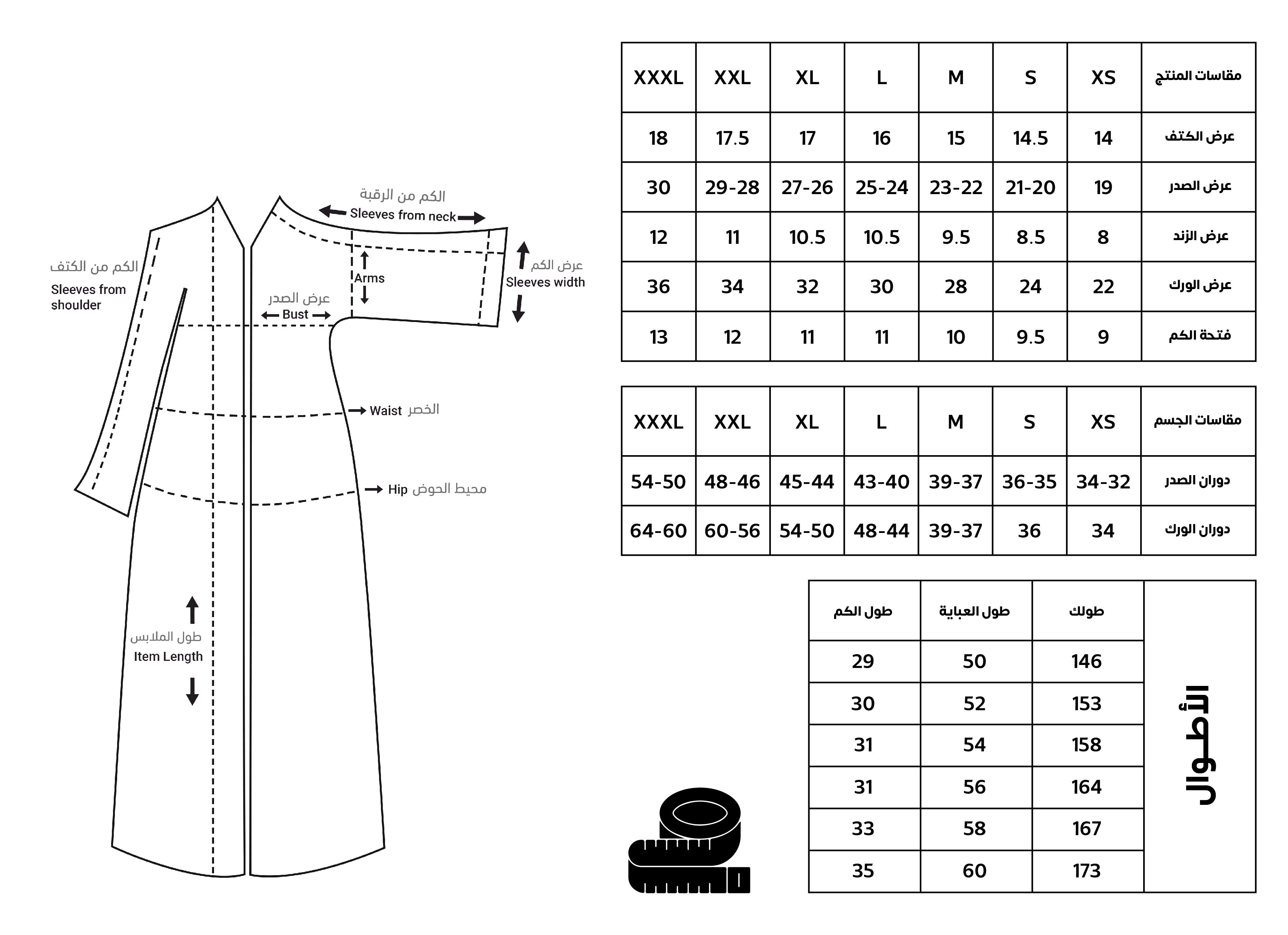 دليل المقاسات :